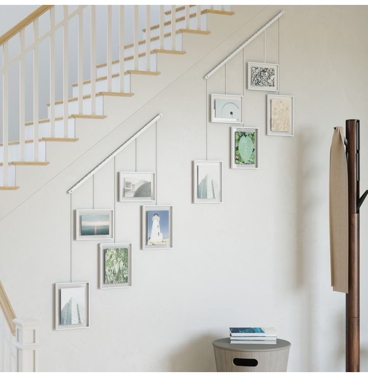 ●レールは水平に掛けるだけでなく、斜めに掛けることもできるので、壁のモダンなアートディスプレイにもなります。