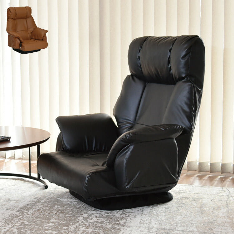 本革使用 フロアチェア ベローナ 360度回転 ローチェア 肘掛け付き 角度無段階調整 リクライニングチェア リラックスチェア 座椅子(代引不可)