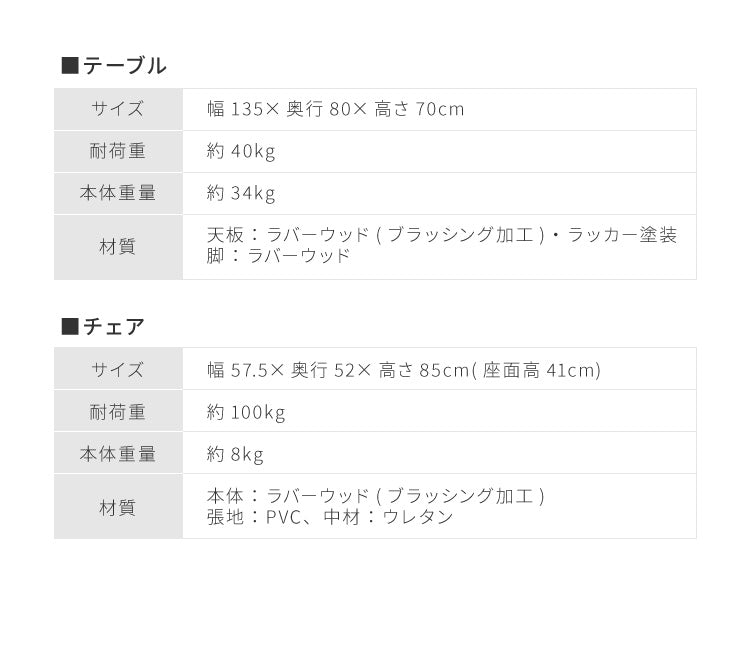 チェア: 幅57.5×奥行52×高さ85cm(座面41)