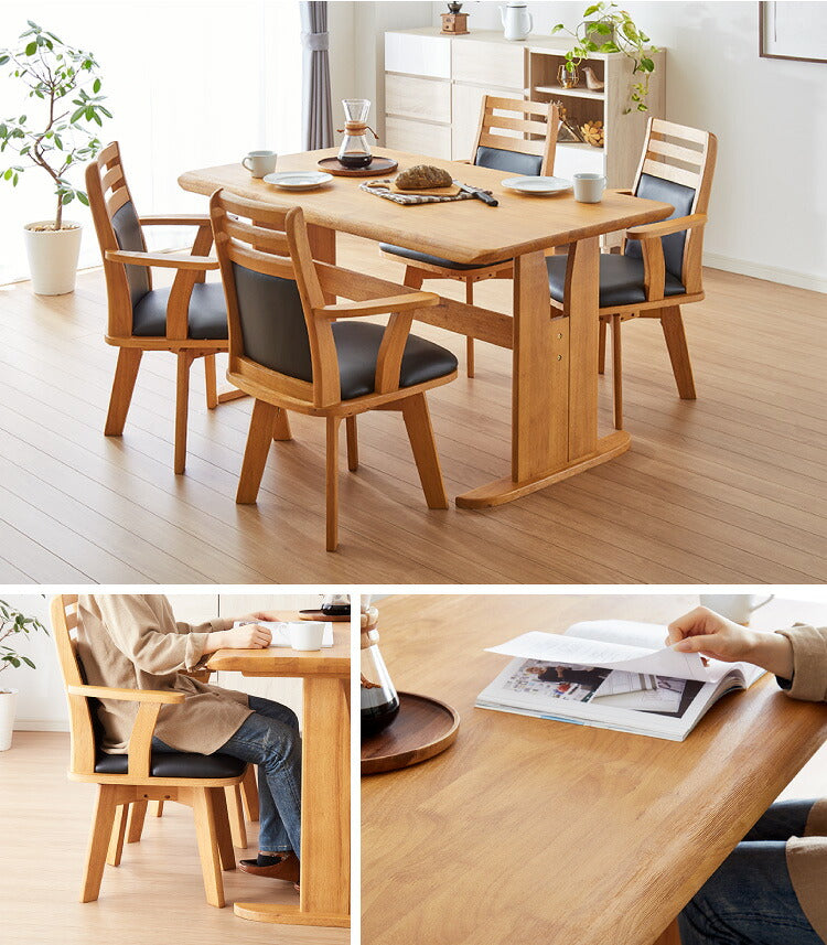 ダイニングテーブル 5点セット ダイニングセット 4人掛け コバ ダイニング5点セット 135幅 4人掛け用 モダン 北欧 おしゃれ かわいい 天板 無垢 無垢材 回転 PCデスク リモート リモートワーク シンプル レトロ (代引不可)