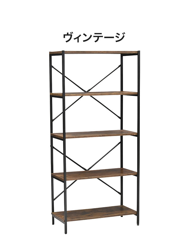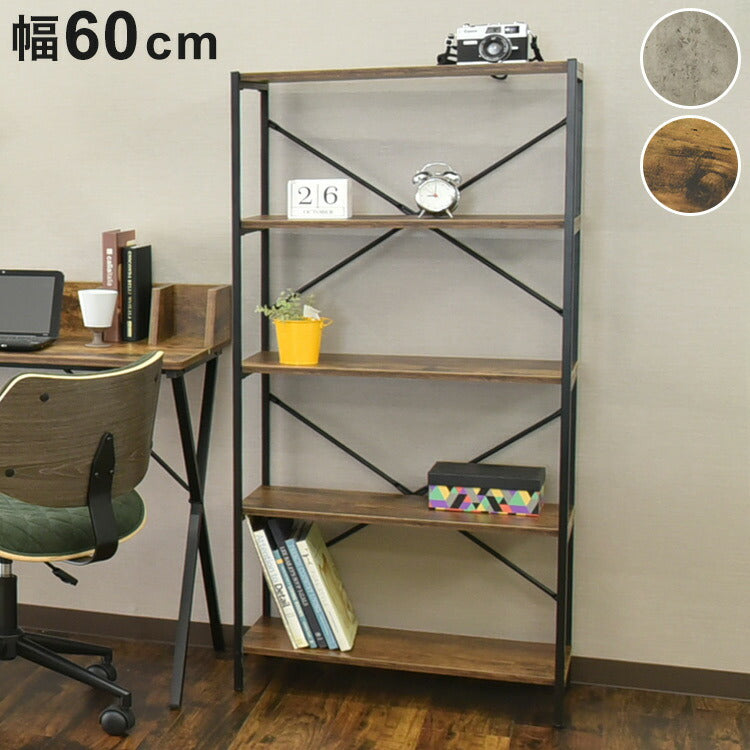 オープンラック 5段 コンタ1 5段ラック ヴィンテージ調 コンクリート調 収納 オープンラック スチールラック グレー ブラウン シェルフ 木目調 おしゃれ 棚 本棚(代引不可)