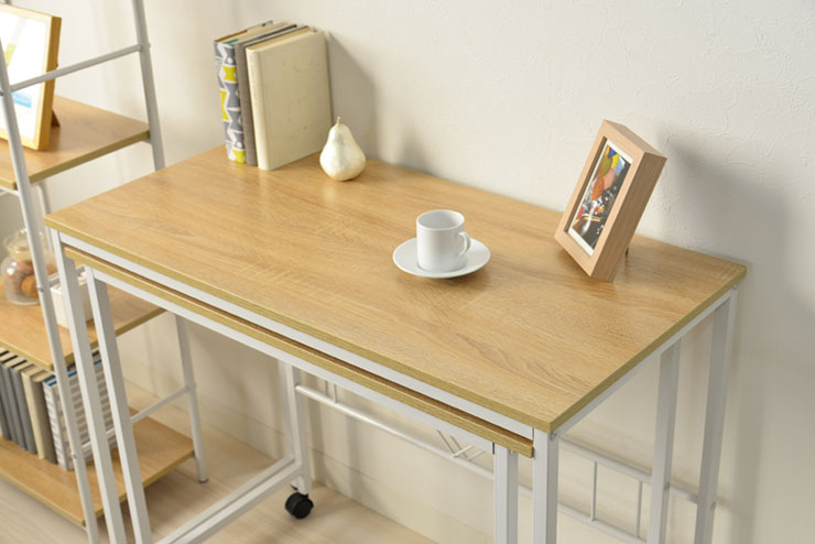 デスク 幅90cm・84cm 2点セット 机 PCデスク 学習机 キャスター付 スチール 北欧 ターブルW 広々使える 大きめ スペース大(代引不可)