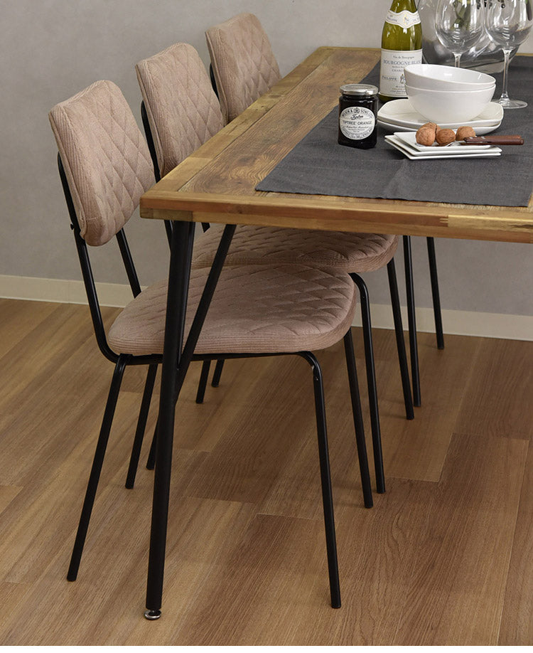 素朴でレトロな趣のある天板とモダンなアイアン製ブラック色の脚との組合せで、レトロモダンの優しくぬくもりのあるお部屋づくりに最適です。