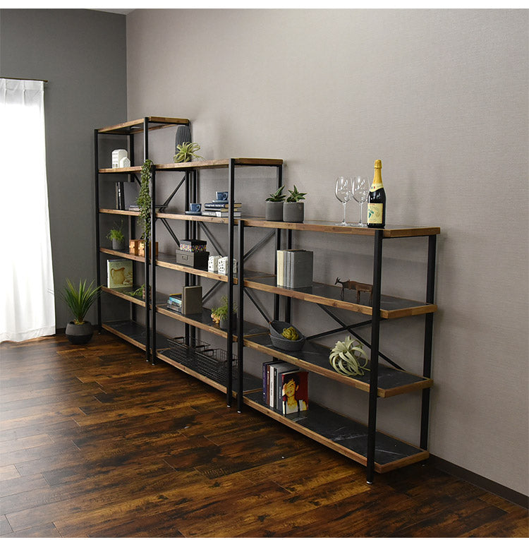 オープンラック 幅78cm 6段 シェルフ FJ-W78-6段 木目調 おしゃれ ヴィンテージ調 収納 収納家具 リビング収納 本棚 ラック ウッドラック ウッドシェルフ 木製棚板(代引不可)