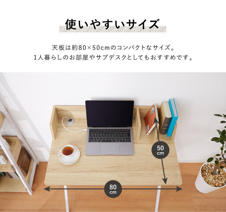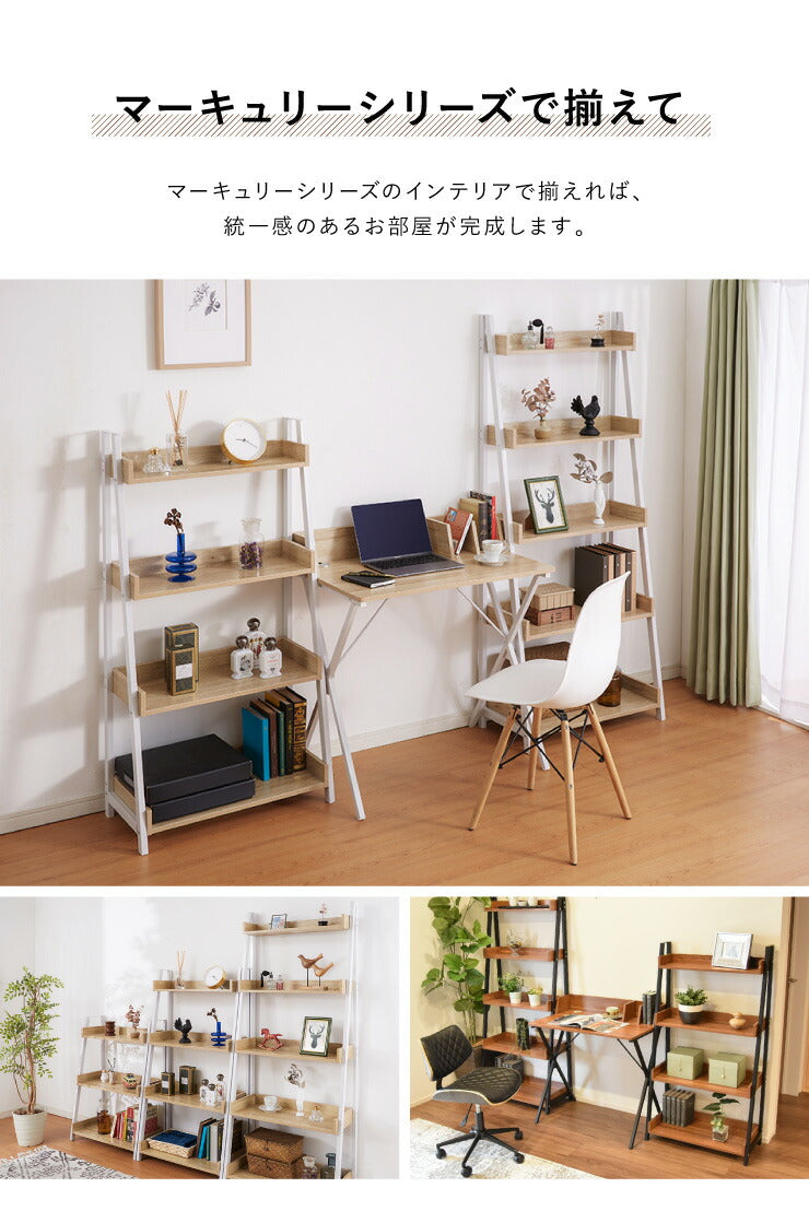 デスク 80cm幅 パソコンデスク 収納棚付き 木製 リモートワーク 在宅勤務 マーキュリー80 書斎 おしゃれ かわいい モダン ホワイト ブラック(代引不可)