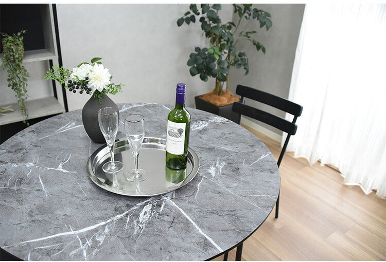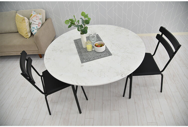 カジュアルモダンの丸型大理石風テーブル