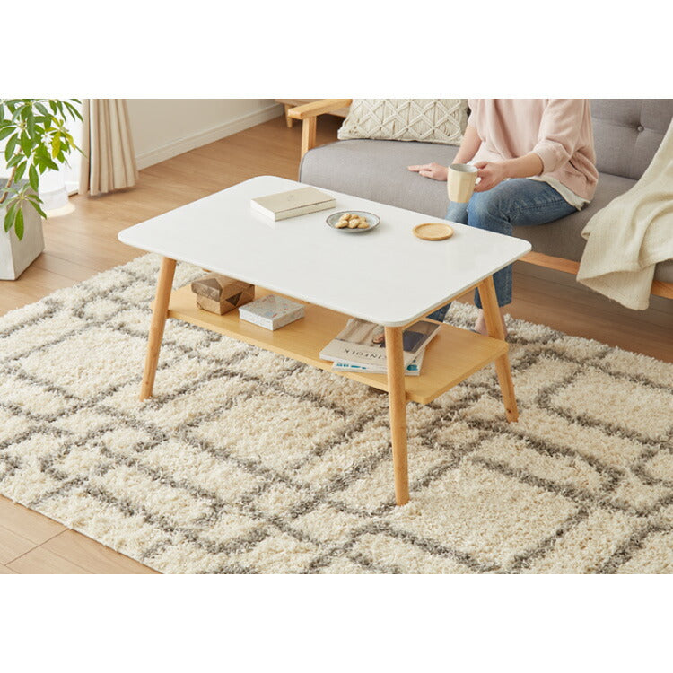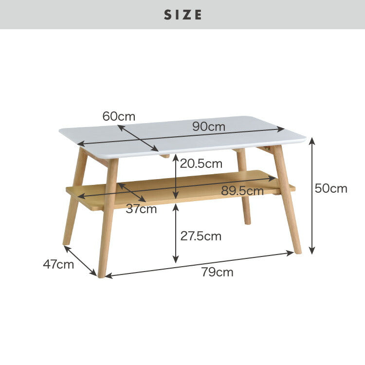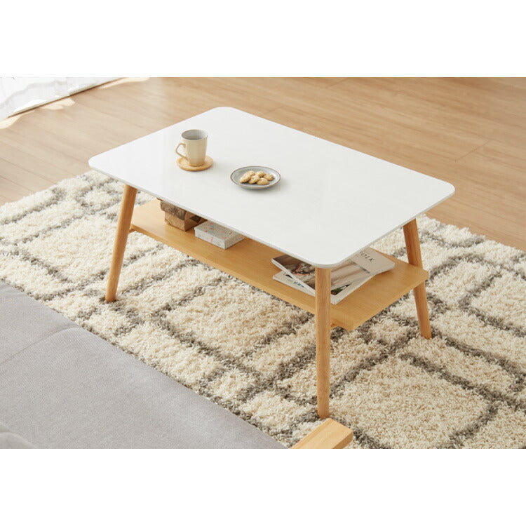 センターテーブル 幅90cm 高さ50cm ローテーブル ホワイト テーブル 折りたたみ 棚板付き 折れ脚 木製 木目 サイドテーブル 収納 家具 コンパクト リビング テレワーク(代引不可)