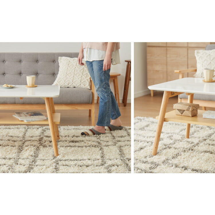 通常のセンターテーブルより、約10cm天板が高いタイプで軽作業や飲み物など手の届きやすい仕様。