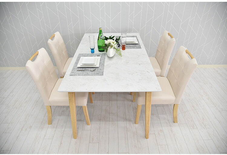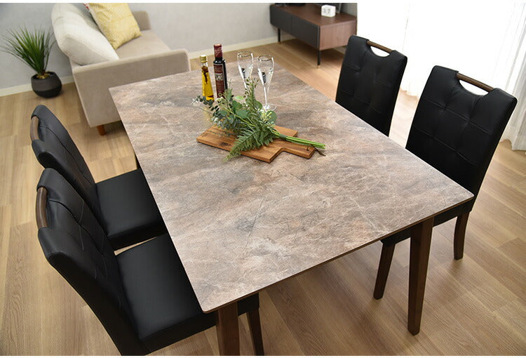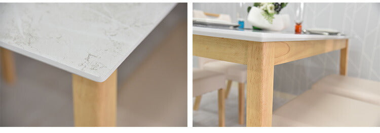 天然木と大理石柄が合わさったカジュアルモダンテイストのダイニングテーブル