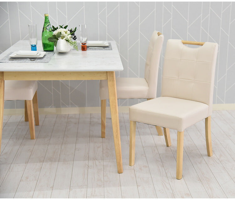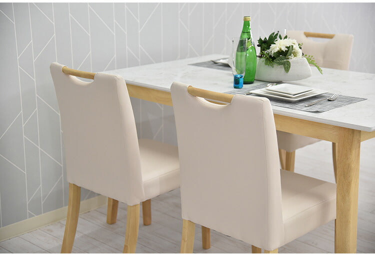 天板は熱・汚れ傷に強いメラミン天板で機能面たっぷり、チェアもサッとお手入れしやすい。