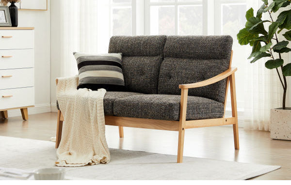 ソファ 木肘ソファ 2人掛け 肘付き 幅123cm ソファ 座面にポケットコイル使用 天然木フレーム 二人掛け ソファー 2人掛けソファ 二人掛けソファ 北欧 おしゃれ ナチュラル ファブリック(代引不可)