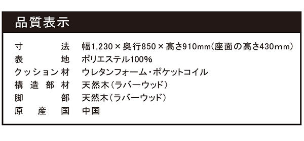 中材:天然木・ウレタンフォーム・ポケットコイル