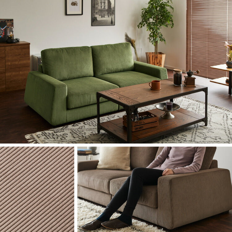 ソファ フロアソファ 2人掛け 2.5人掛け コーデュロイ ローソファ 幅166 奥行90 開梱設置無料 おしゃれ カバーリング 洗える ソファー sofa コンパクト グリーン ブラウン グレー モダン ナチュラル(代引不可)