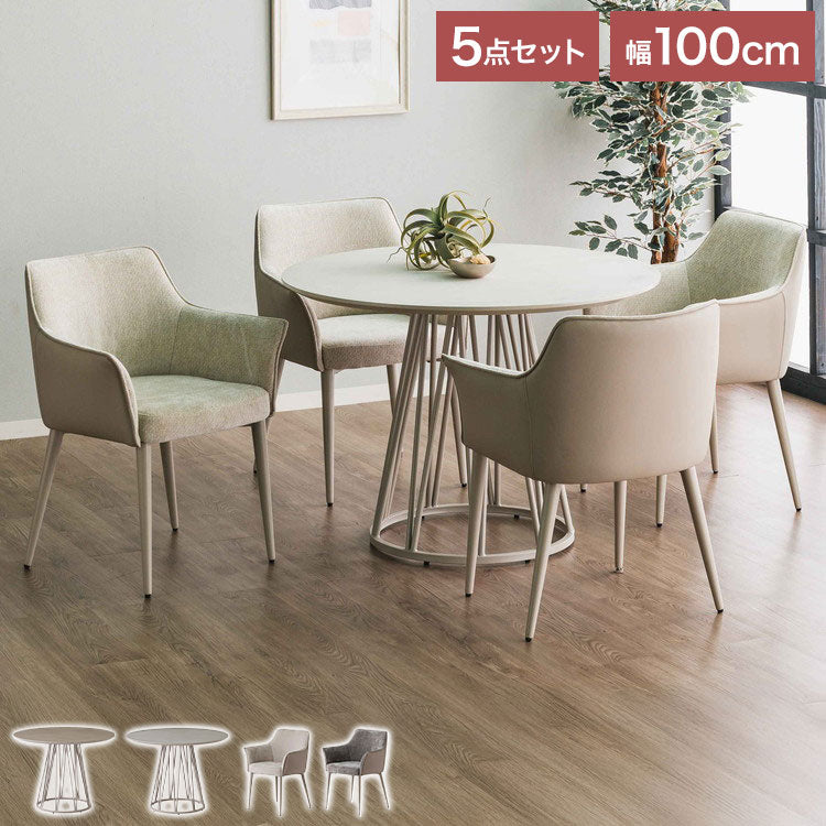 ダイニングセット 円形 サイドテーブル 幅100 ファブリック ダイニングチェア 4個入り ラウンドテーブル ミニテーブル ナイトテーブル ベッドサイド ソファサイド テーブル 北欧 メラミン スチール(代引不可)