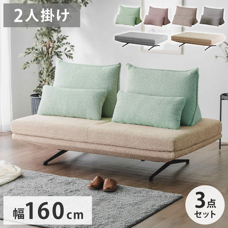 アイランドソファ 二人掛け ソファセット 背・クッション 2個セット ブークレ カウチソファ ソファ リビング 北欧風 フェミニン かわいい おしゃれ 高級感(代引不可)