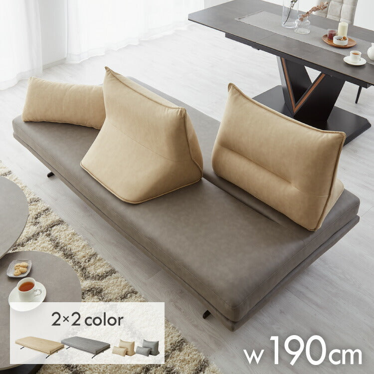 ソファ 3人掛け アイランドソファ 背もたれクッション×2 ソファセット 開梱設置無料 脚付き ファブリックレザー 3P ソファベッド フロアソファ ローソファ 大型 おしゃれ(代引不可)