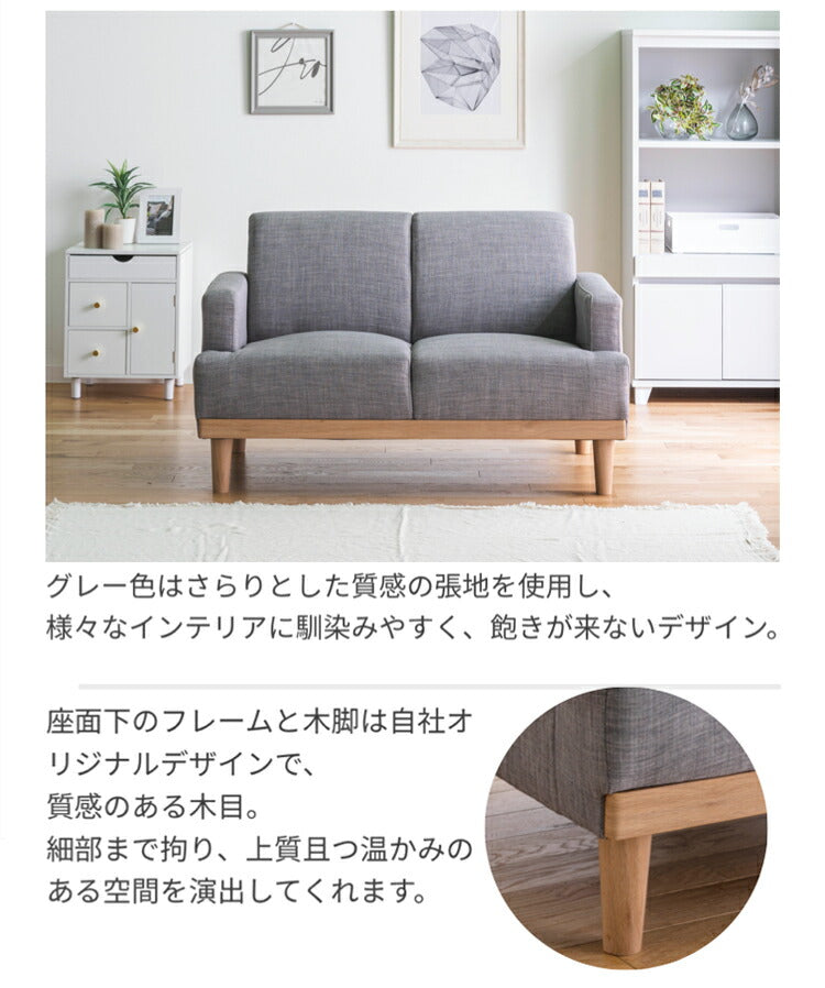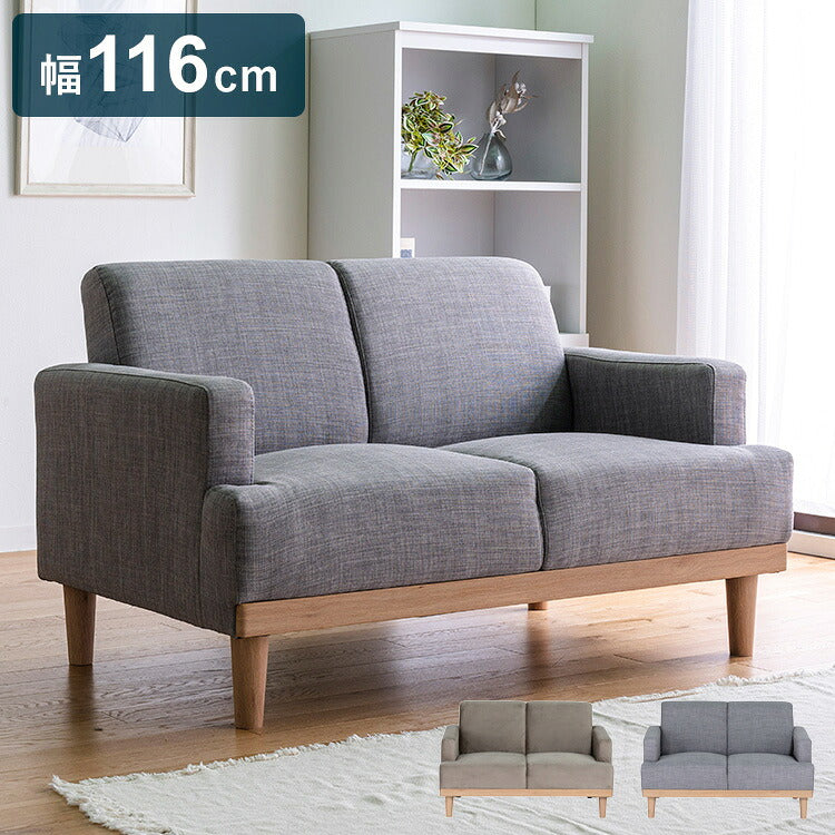 コンパクトソファ 2P 2人掛け 幅116cm 奥行71cm 天然木 ファブリック おしゃれ 北欧 肘置き 肘付き 2.5人掛け ローソファー 新生活 一人暮らし フロアソファ ソファー(代引不可)