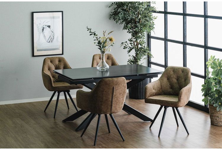 ダイニングセット ダイニングテーブル セラミック エクステンション 幅160~220 ×奥行90×高さ72cm 4人掛け ラウンド ダイニングチェア 4個入り ファブリック 北欧 おしゃれ 伸長式 リビング 伸縮(代引不可)