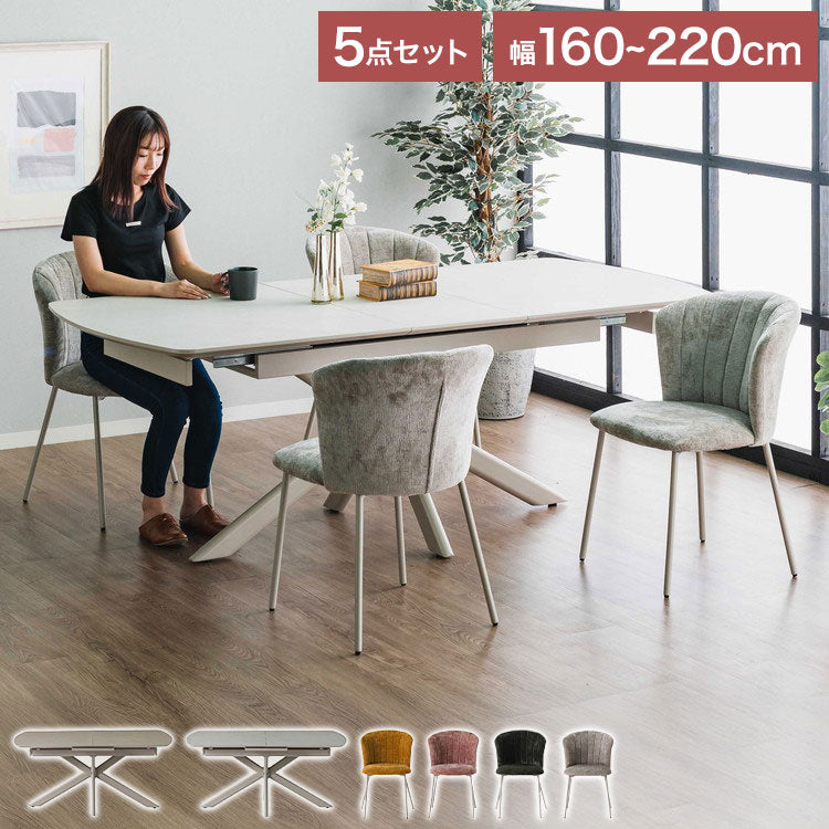 ダイニングセット ダイニングテーブル セラミック 高圧メラミン エクステンション 幅160~220 4人掛け コーデュロイ ダイニングチェア 4個入り 北欧 おしゃれ 伸長式 ダイニングテーブル リビング(代引不可)