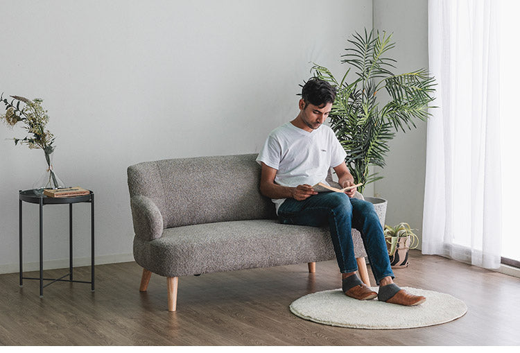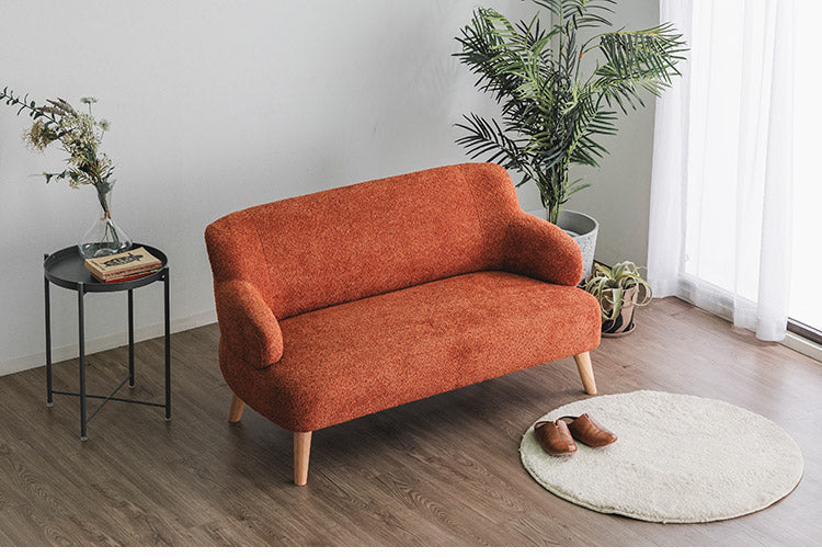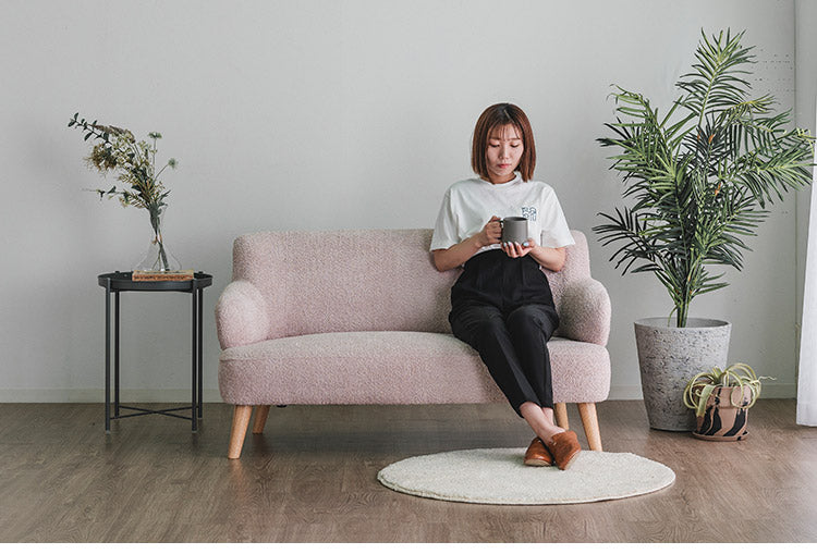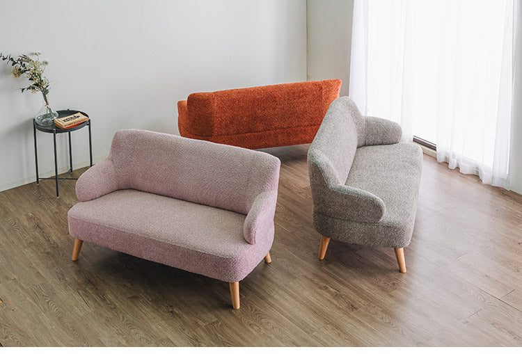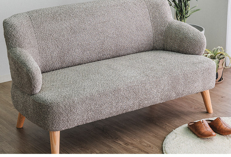カウチソファ 2人掛けソファ 幅129cm モコモコ ゆったり ブラウン ピンク ベージュ 座り心地 くつろぎ ふかふか 木脚 おしゃれ コンパクト 北欧 家具 インテリア モダン(代引不可)
