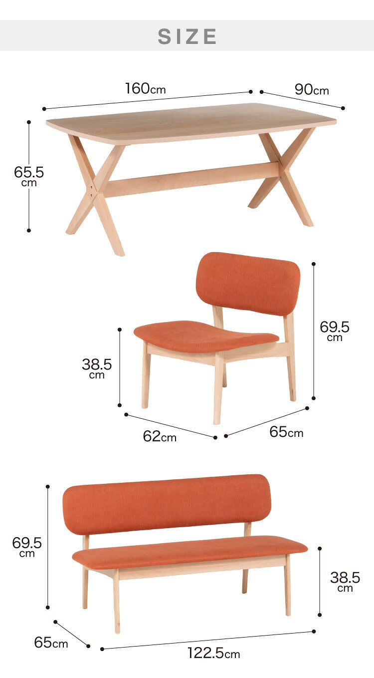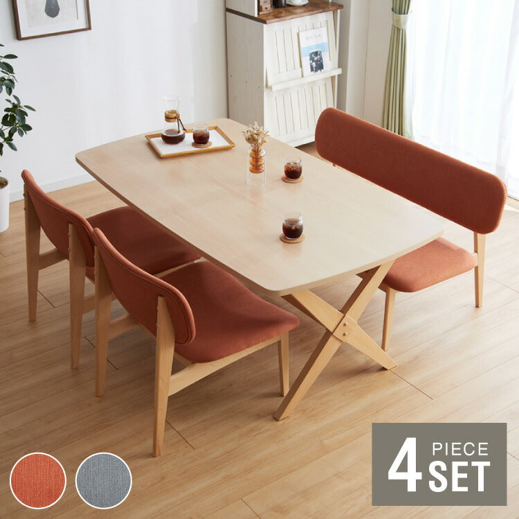 ダイニングセット 4人掛け ベンチ ダイニングテーブルセット ロータイプ 低め 幅160 高さ65.5 広々座面 ナチュラル ファブリック ビーチ突板 木製 おしゃれ 北欧(代引不可)