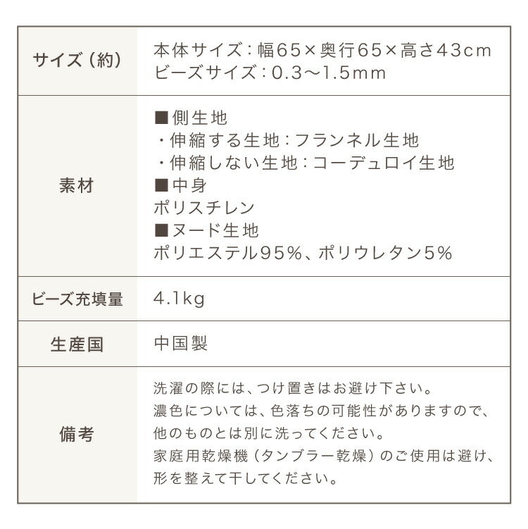 ビーズクッション コーデュロイ生地 Lサイズ 65×65×43cm 洗える 洗濯可能 ビーズクッション カバー ヘたりにくい マイクロビーズ クッション ソファ カバー カバーリング ビーズ ソファ