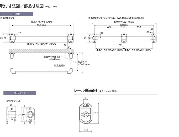 ハンギングバー H-1 正面付けCタイプセット