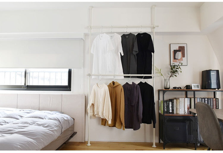 ・縦方向のつっぱり棒と横方向のつっぱり棒を組み合わせて作るハンガーラックです。