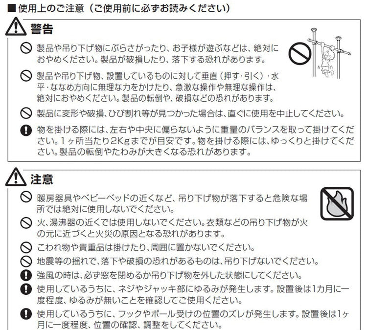 つっぱり棒を設置する際は、必ず取扱説明書をよく読んでから設置してください。