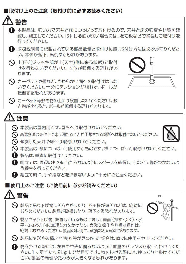 つっぱり棒を設置する際は、必ず取扱説明書をよく読んでから設置してください。