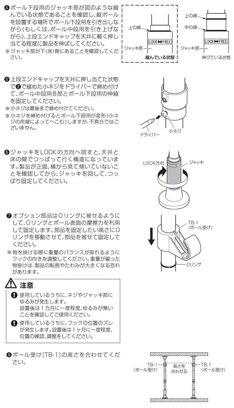 ・ジャッキ機構を採用したつっぱり棒なので簡単に確実に固定ができます。