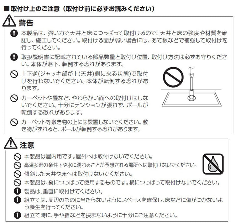つっぱり棒を設置する際は、必ず取扱説明書をよく読んでから設置してください。