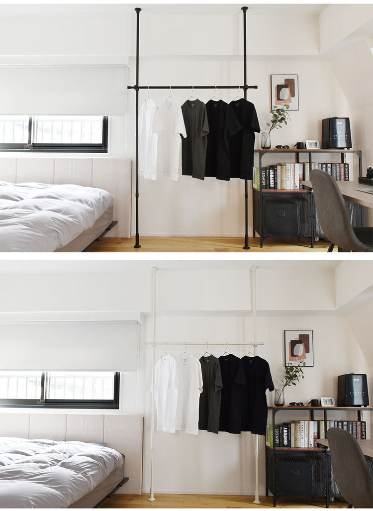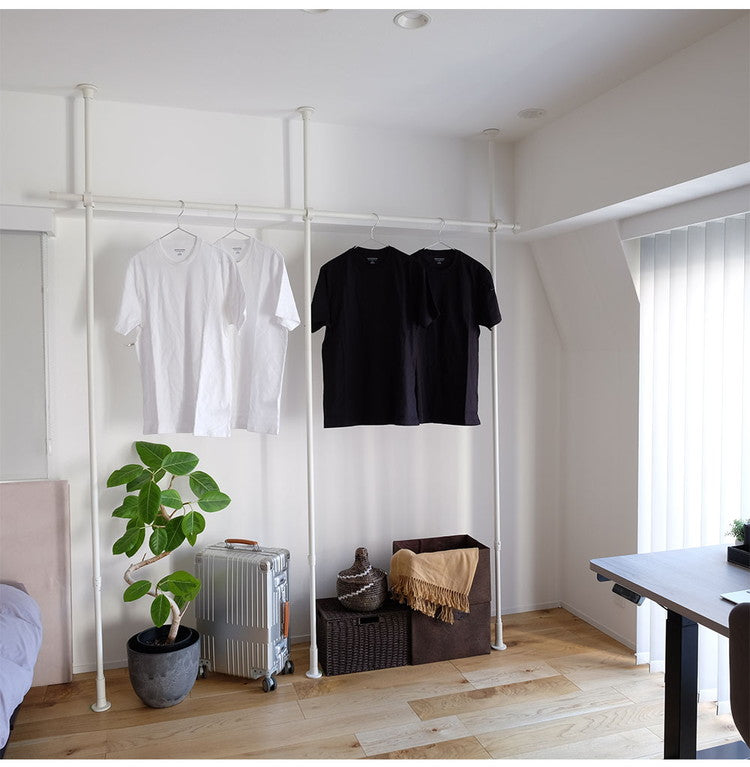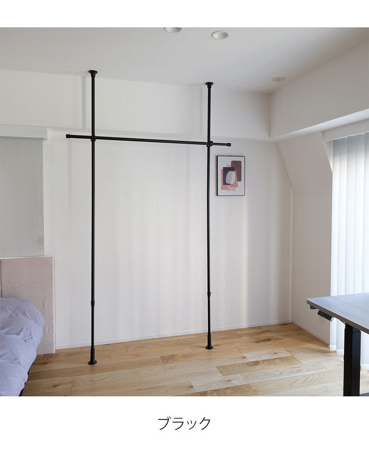 ・縦方向のつっぱり棒と横方向のつっぱり棒を組み合わせて作るハンガーラックです。