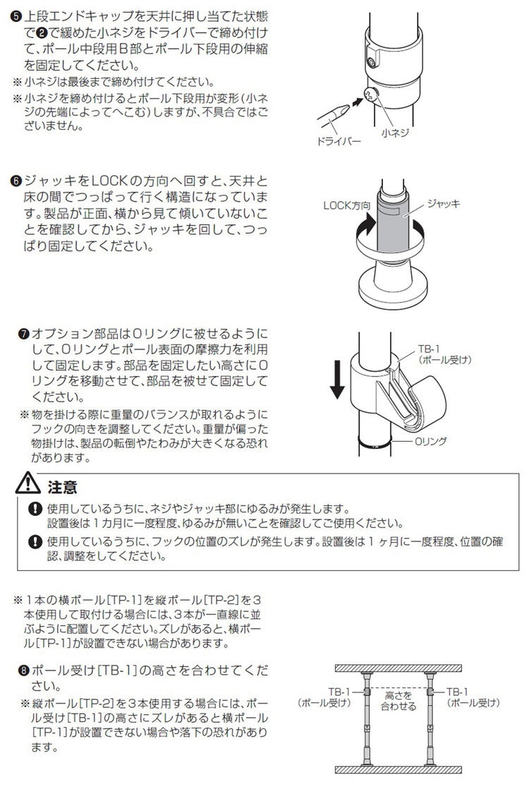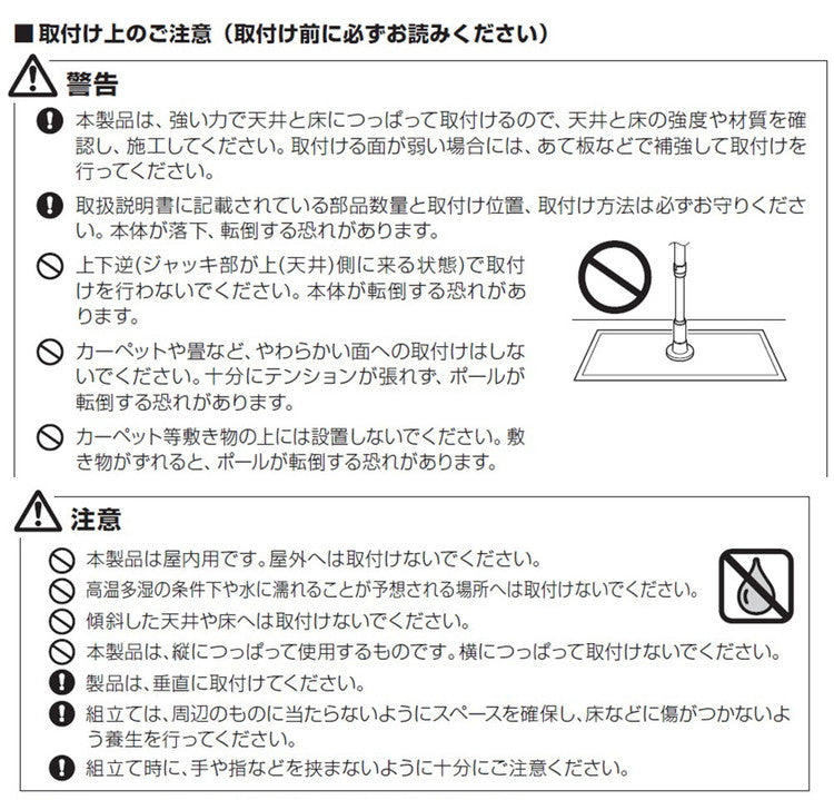 つっぱり棒を設置する際は、必ず取扱説明書をよく読んでから設置してください。