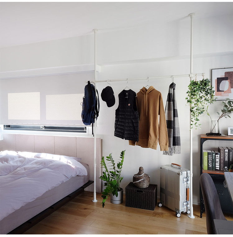・縦方向のつっぱり棒と横方向のつっぱり棒を組み合わせて作るハンガーラックです。