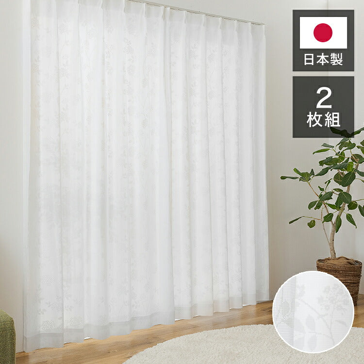 日本製 UVカット リーフ柄 2枚組 レースカーテン 幅100 丈133 176 198 昼見えにくい 紫外線 断熱 保温 省エネ エコ 節電 ミラーレース ウォッシャブル おしゃれ かわいい 新生活 一人暮らし(代引不可)
