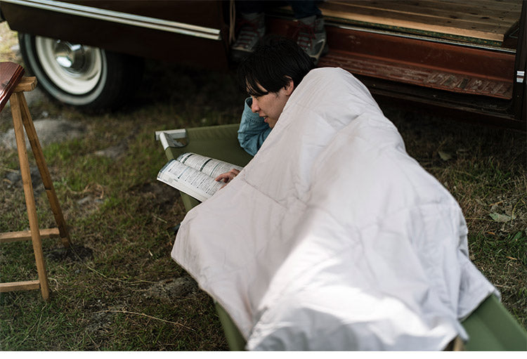 薄くて軽いので、コンパクトに収納可能。キャンプやスポーツ観戦、出張などの外出先やアウトドアへの持ち運びが楽々!