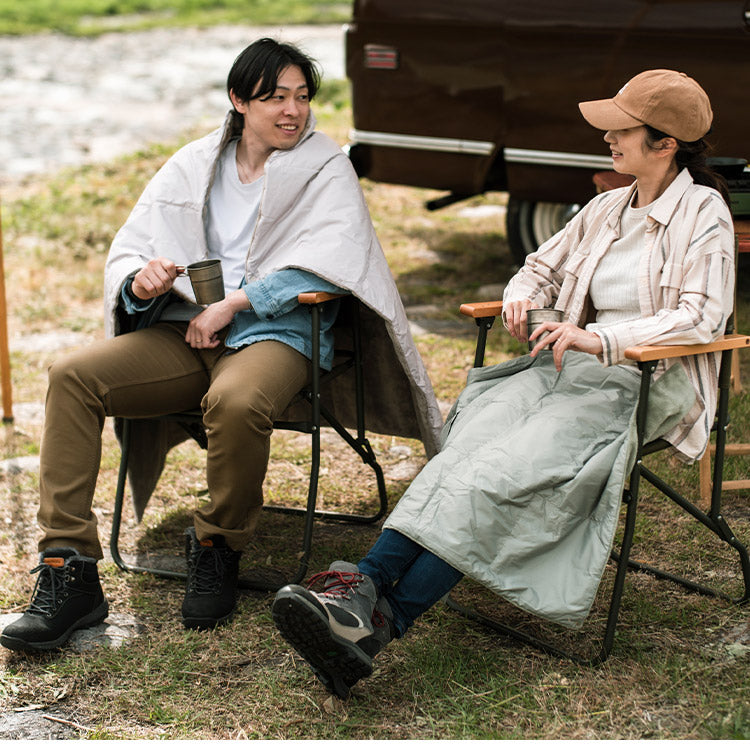 薄くて軽いので、コンパクトに収納可能。キャンプやスポーツ観戦、出張などの外出先やアウトドアへの持ち運びが楽々!