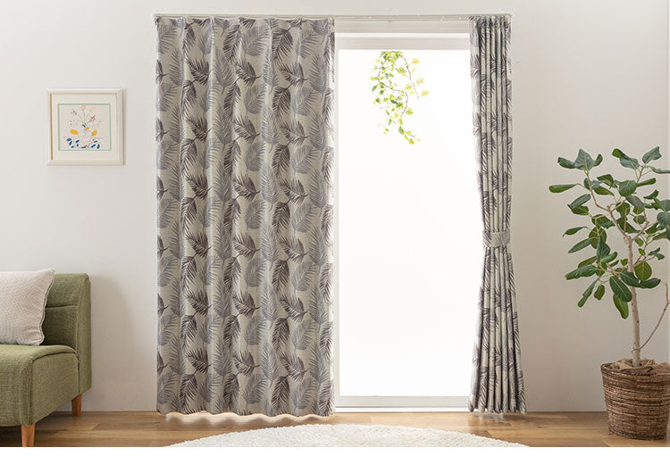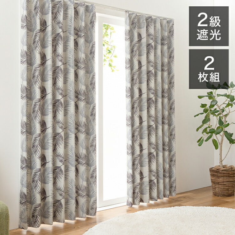 2級遮光 カーテン リーフ柄 2枚組 幅100 丈135 178 200 おしゃれ 北欧 リーフ柄 葉っぱ シック ブラック かっこいい カーテン ドレープカーテン タッセル付き ウォッシャブル 新生活 一人暮らし(代引不可)