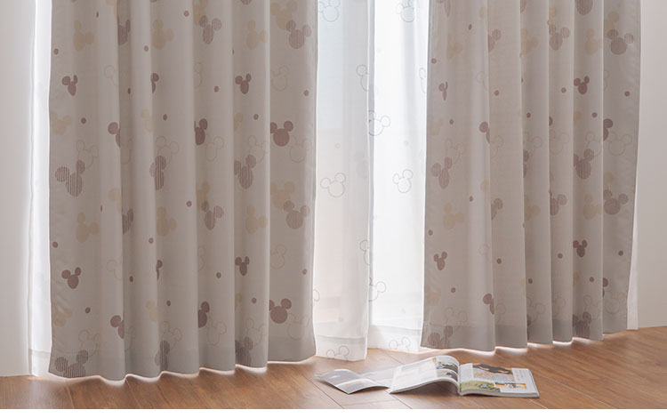 カーテンを替えるだけで夢見る時間が訪れる、大人可愛いディズニー遮光カーテンです。