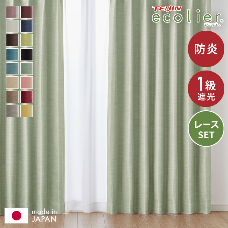 カーテン 4枚セット 2枚セット 1級遮光カーテン レースカーテン付き 日本製 防炎 タッセル付き 幅100 150 200cm 遮熱 保温 節電 省エネ 4枚組 2枚組(代引不可)