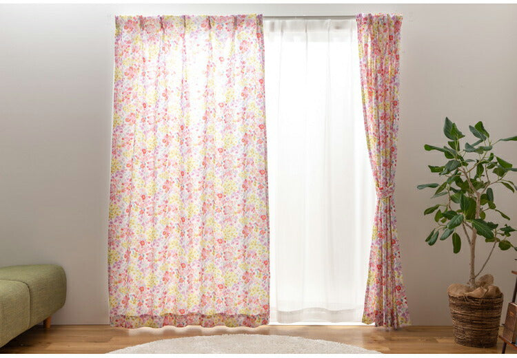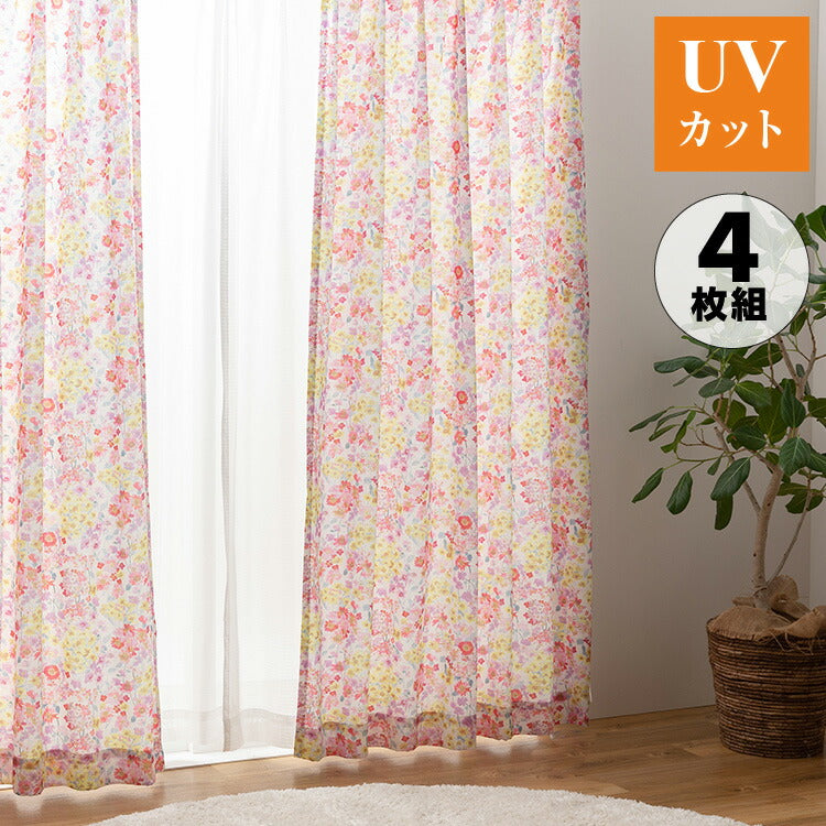 遮光カーテン 4枚セット カーテン 遮光 UVカット 紫外線 ミラー 昼見えにくい ウォッシャブル 新生活 一人暮らし 花柄 ドレープカーテン 4Pフィノ(代引不可)