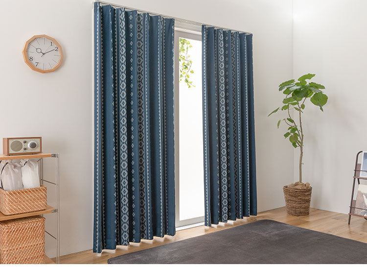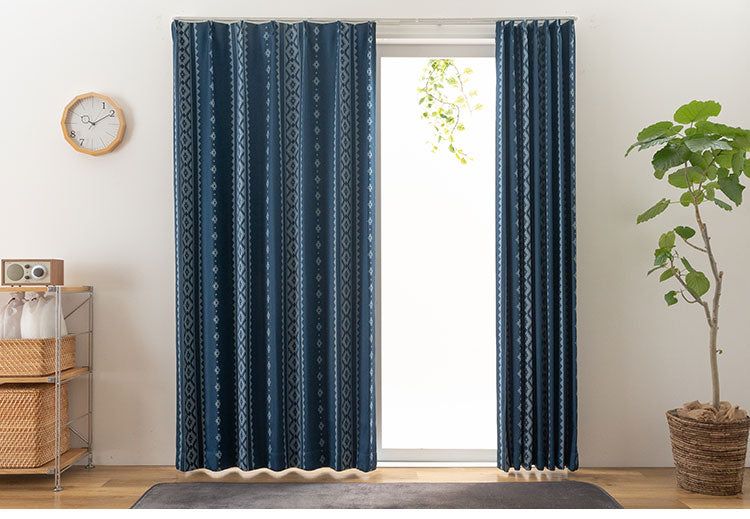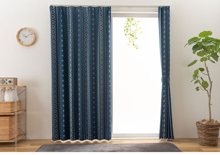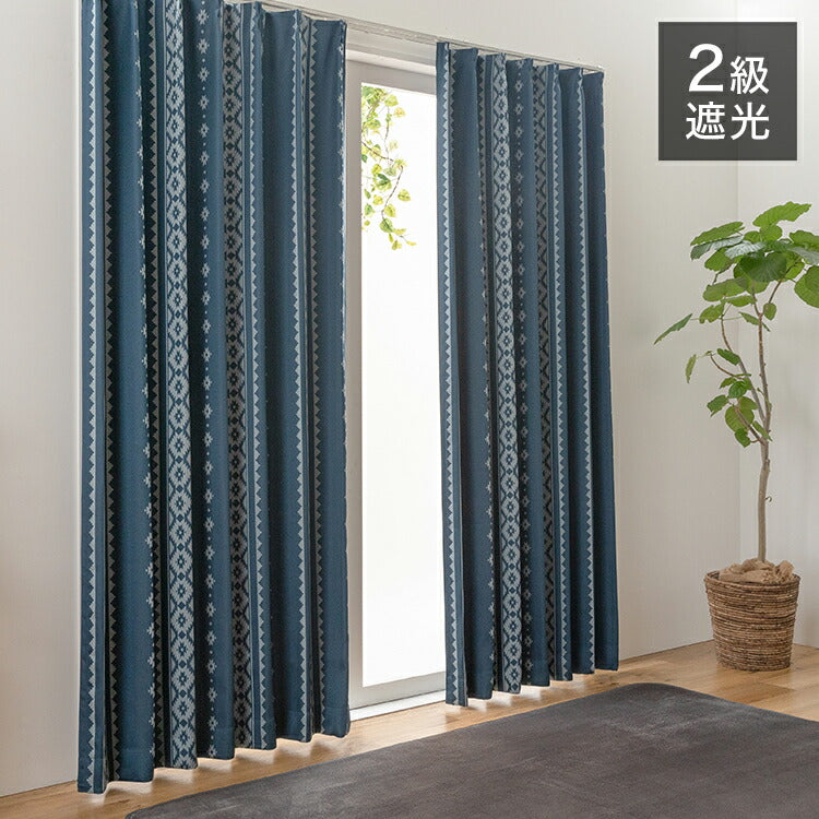 2級遮光 カーテン 7サイズ おしゃれ 北欧 洋風 ドレープカーテン タッセル付き ウォッシャブル ネイビー 光を程よく取り入れる 遮光 新生活 一人暮らし(代引不可)