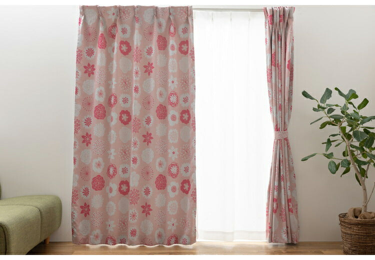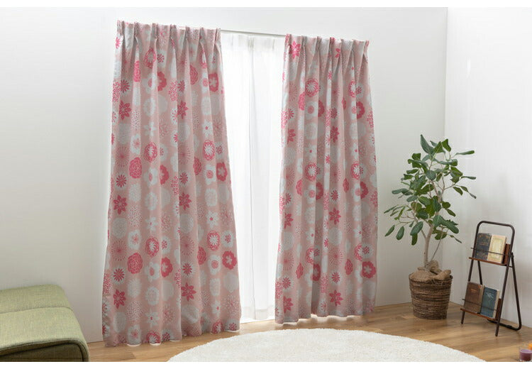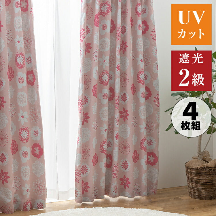 遮光カーテン 4枚セット カーテン 2級遮光 UVカット 紫外線 ミラー 昼見えにくい ウォッシャブル 新生活 一人暮らし 花柄 ドレープカーテン 4Pカラン(代引不可)