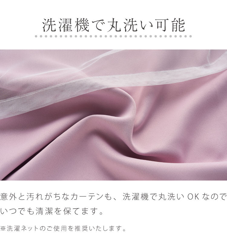 意外と汚れがちなカーテンも、洗濯機で丸洗いOKなのでいつでも清潔を保てます。