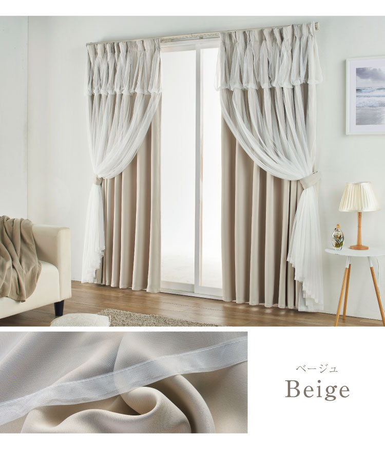 レイヤードカーテン ダブルカーテン 一体型カーテン 2級遮光 洗濯可能 姫系カーテン 2重カーテン 無地 かわいい おしゃれ 北欧 寝室 韓国風 海外風 インテリア ダブルカーテン 2重 洗える(代引不可)