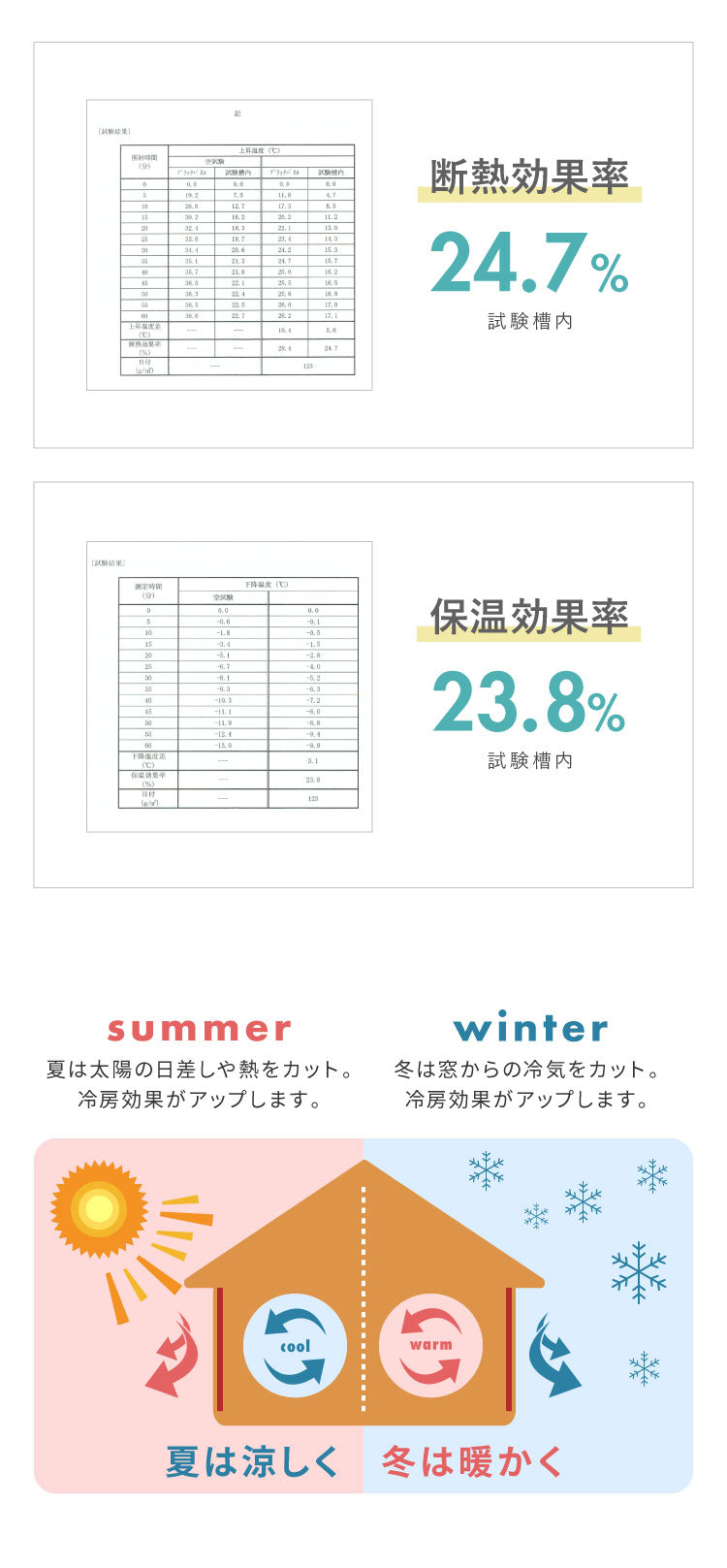 省エネ効果もあり、断熱効果、保温効果率が期待できます。