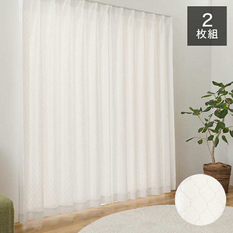レースカーテン UVカット 紫外線 昼見えにくい 2枚組 幅100 丈133 176 198 ラメ糸 遮熱 保温 省エネ エコ ミラーレース 可愛い ウォッシャブル おしゃれ かわいい 洗濯可能(代引不可)