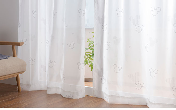 大人可愛いデザインが窓辺のアクセントに! おしゃれなミッキーモチーフのボイルカーテンです。遮熱・保温効果、UVカット機能もプラスしました。カーテンを替えるだけで夢見る時間が訪れる、大人可愛いディズニーボイルカーテンです。シンプルなデザインで子ども部屋はもちろん、大人のお部屋にもマッチ。