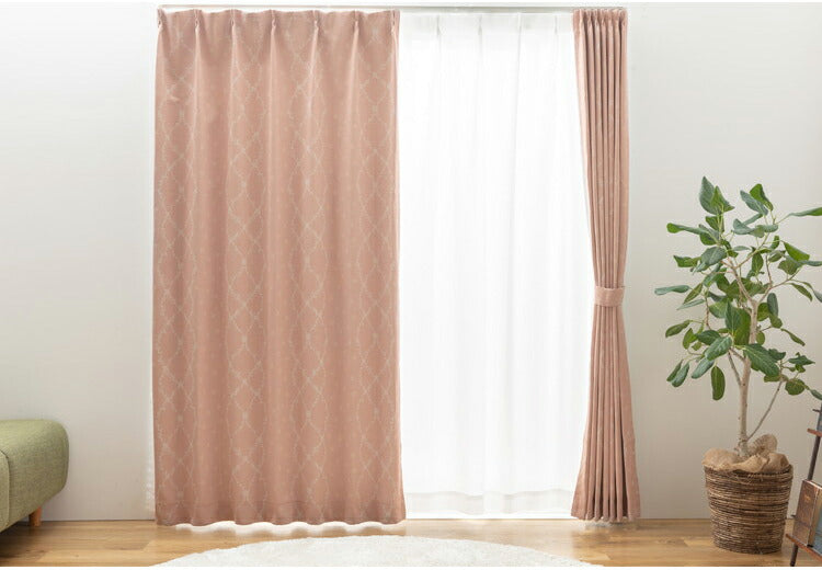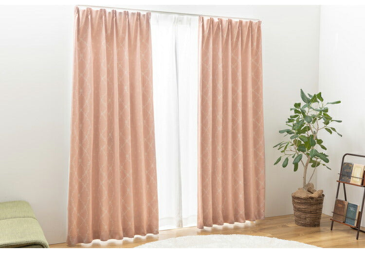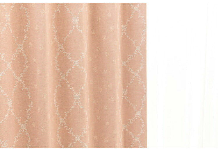 2級遮光のあるドレープカーテンです。朝日がまぶしくない程度に光を遮りたい方におすすめ!うすピンクのフェミニンな模様で部屋を彩ってくれます。形状記憶加工によりカーテンのひだを保ち、洗濯しても型崩れしません。アジャスターフック(Aフック)、同色タッセルが付属されております。洗濯機での洗濯可能なのでお手入れも簡単です!※商品写真はできる限り実物の色に近づけるよう加工しておりますが、撮影環境やお客様のお使いのモニター設定、お部屋の照明等により実際の商品と色味が異なる場合がございます。 ご了承ください。